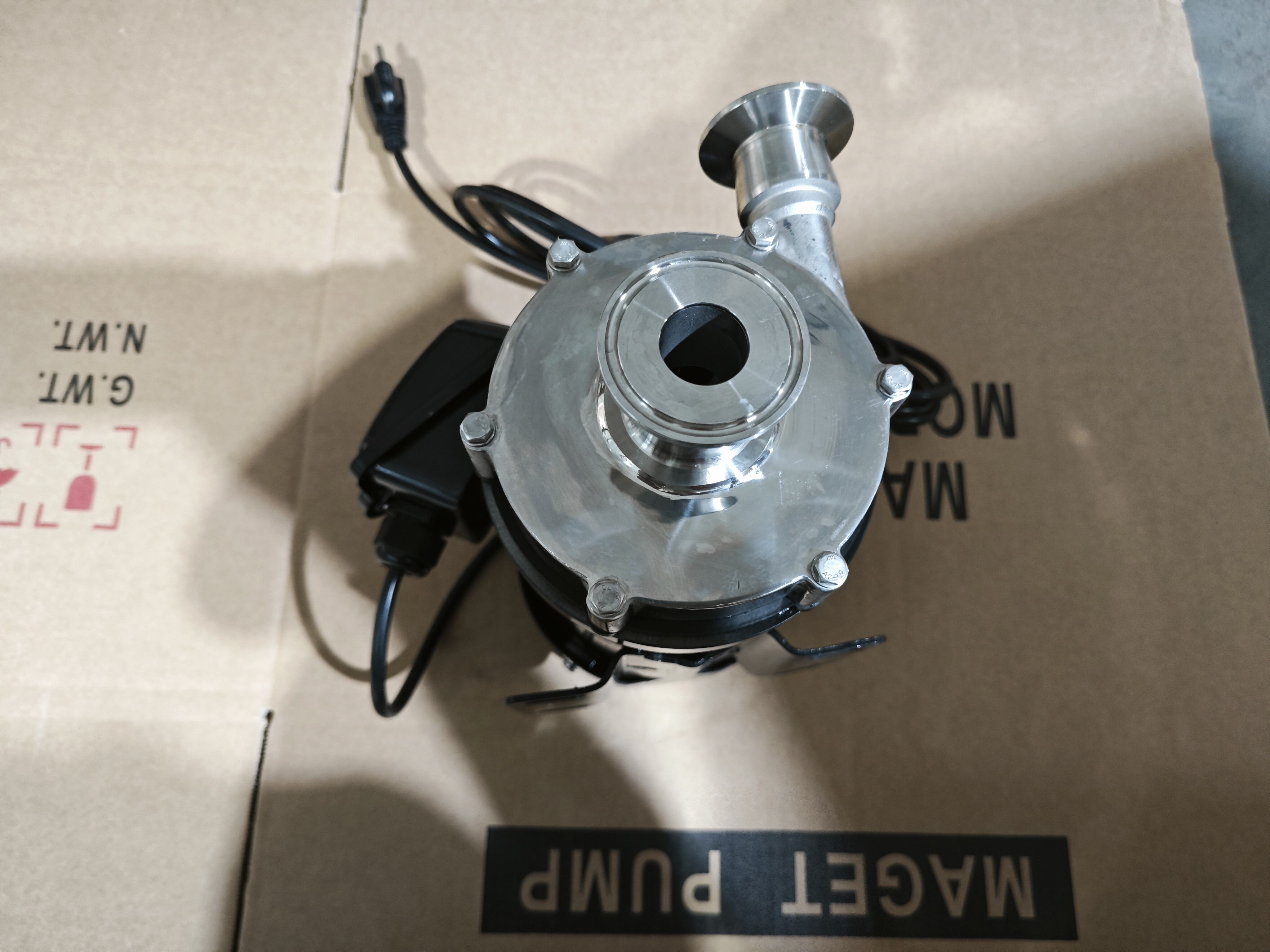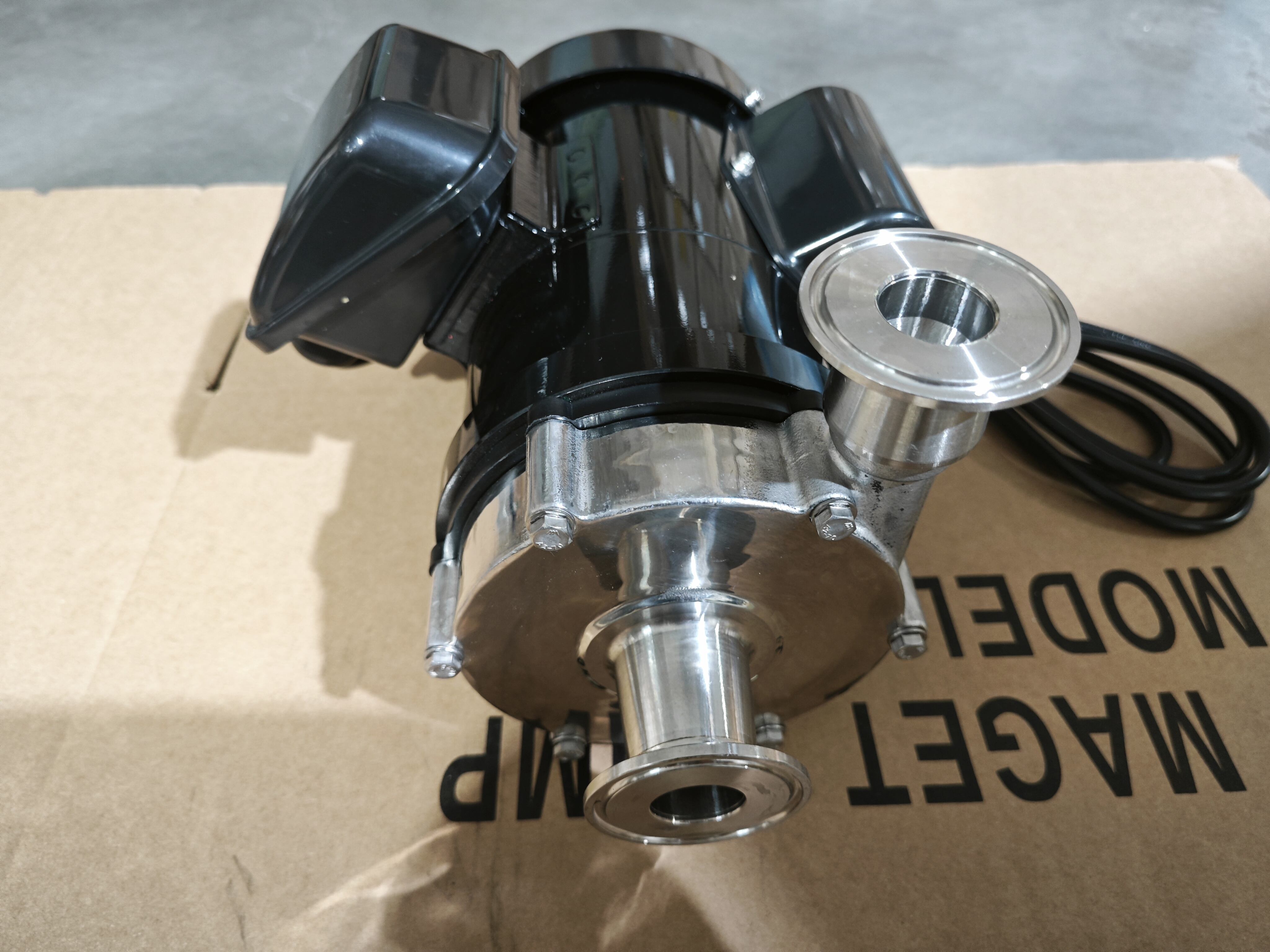 A sealless centrifugal pump, with magnets in its impeller and motor shaft, its magnet-driven impeller gets sufficient power from combined magnet torque against motor torque. |