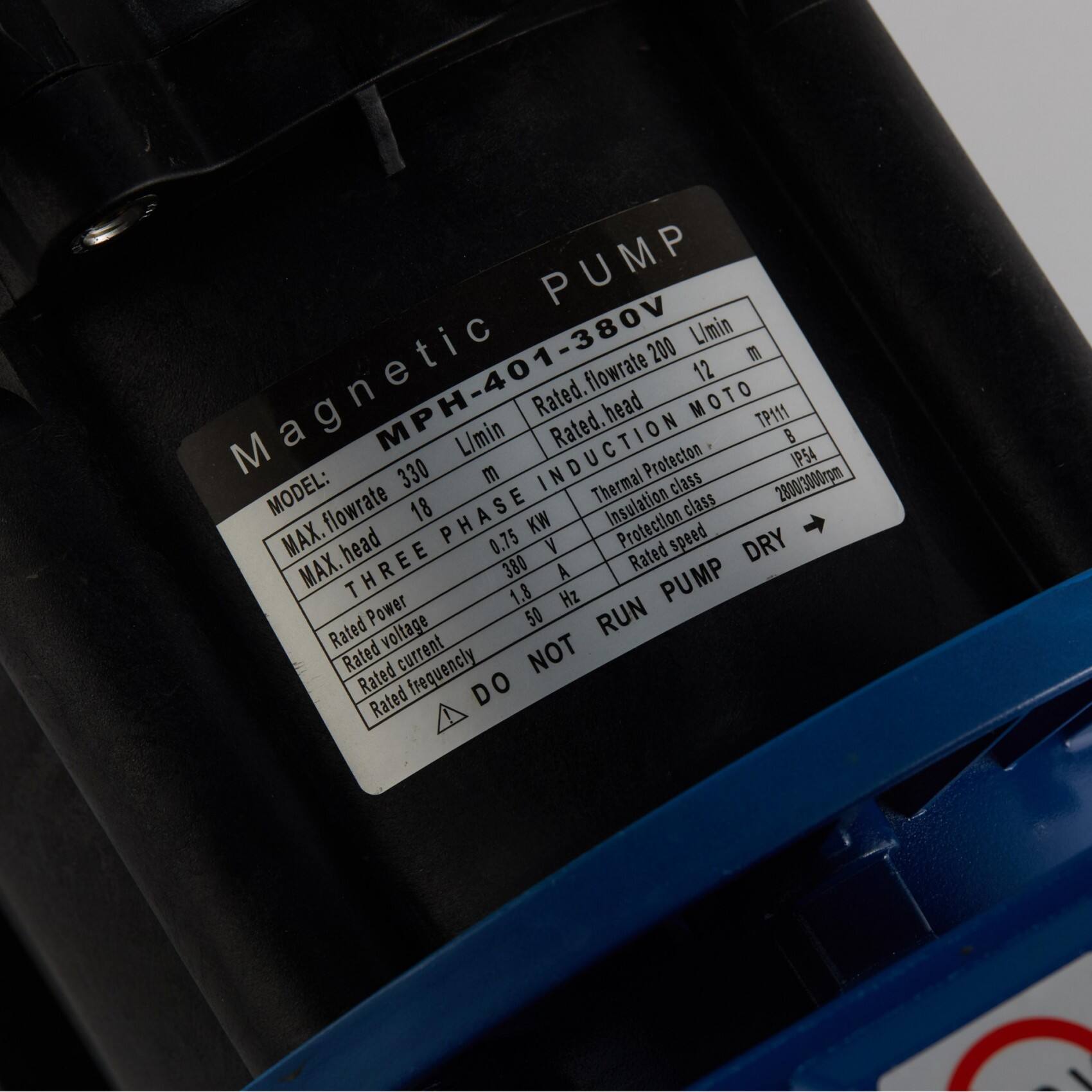 Dry running is forbidden, as it will damage the motor and impeller.